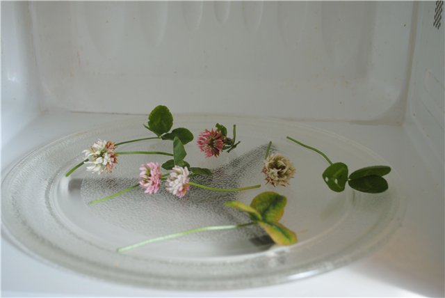Сушити квіти в мікрохвильовій печі просто, ефективно, а головне швидко. Дивно, що при сушінні подібним способом, бутони абсолютно не втрачають кольору і форми. Для сушіння потрібно силікагель або наповнювач для котячого горщика у вигляді кристалів.