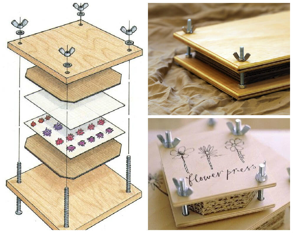 Спосіб хороший тим, що ви можете висушити за один раз велику кількість букетів. Готові композиції відмінно підходять для розміщення в панно. Для процедури вам знадобляться паперові серветки, 2 листи фанери, вантаж.