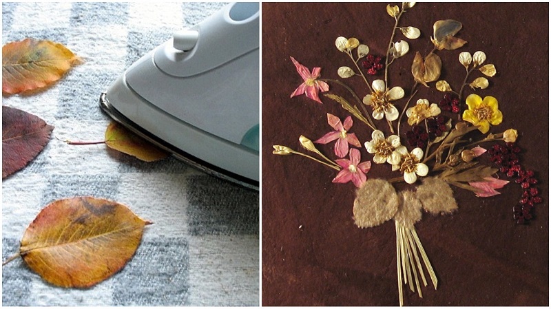 Подібний спосіб підходить для засушування невеликих квітів з плоскими бутонами. З допомогою праски ви зможете висушити клематис, братки або примулу. Для процедури вам знадобиться паперова серветка або цигарковий папір.