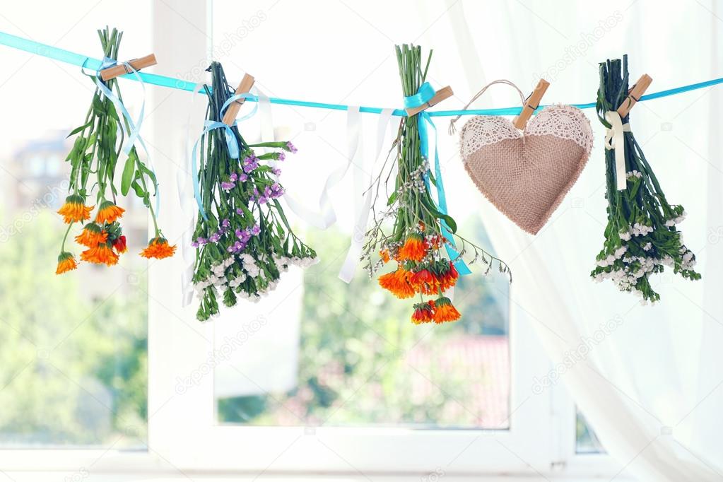 - розвішуйте букети на відстані один від одного, нижче стелі на 20 см;