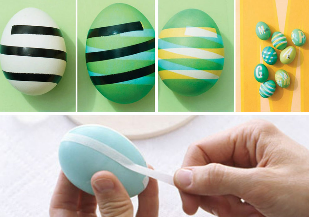В якості декору можна використовувати нитки, резинки, трафарети з листочків рослин або тканини. На вже пофарбовані яйця можна наклеїти невеликі наклейки або нанести візерунок за допомогою маркера. Також можна створювати візерунки, використовуючи кілька відтінків барвників на одному яйці.