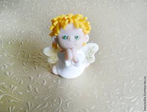 Німб зліпіть з жовтого пластиліну. Приклейте його до верхівки. Ось і все, ангел готовий. Ще існує спосіб створення ангела з пінопласту, але він набагато складніше. Все це, тому що з пінопластом, досить важко працювати.