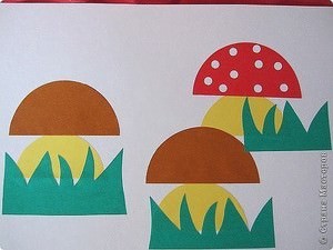 Намалювати на аркуші паперу гриб, що складається з двох частин: ніжки та шапки. Це можуть бути геометричні фігури: прямокутник і півколо.