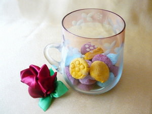 - В другу ємність наливають воду. В неї додають барвник, ефірне і рослинне масло. Рослинна олія допоможе майбутній масі придбати пластичність. Чим більше додано барвника, тим яскравіше вийде камінчик. Щоб запах був тривалим і насиченим, треба додати більше ефірного масла.