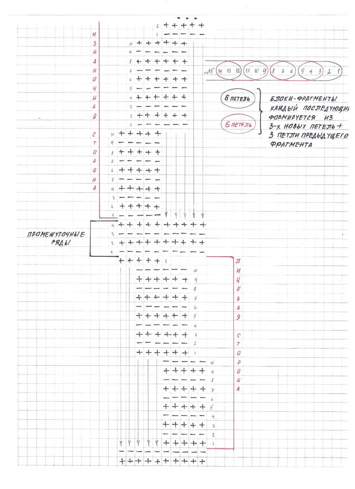 - Далі проходять, повторюючи в’язання з 5 ряду, парні ряди в’яжуть по малюнку.