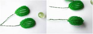 За цим принципом виконується весь пелюстка. Після завершення останнього ряду кінці дроту пропускаються через крайні бісеринки для закріплення і обрізаються максимально коротко. Таким же способом виконується плетіння всіх інших пелюсток.