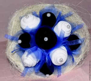 - Зробивши кілька квіток з вихідного матеріалу, створюємо композиції за власним бажанням і уподобанням майбутнього володаря.