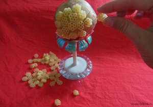 Їх не потрібно піддавати ніякої хімічної обробці: достатньо лише вимити і висушити макарони.- Можна вибрати будь-яку форму макаронів: фарфалле (бантики), спіральки, черепашки, літери та інші види. Ви можете поєднувати різні фігурки і покроково створити свою композицію з рожек, яка прикрасить кімнату.
