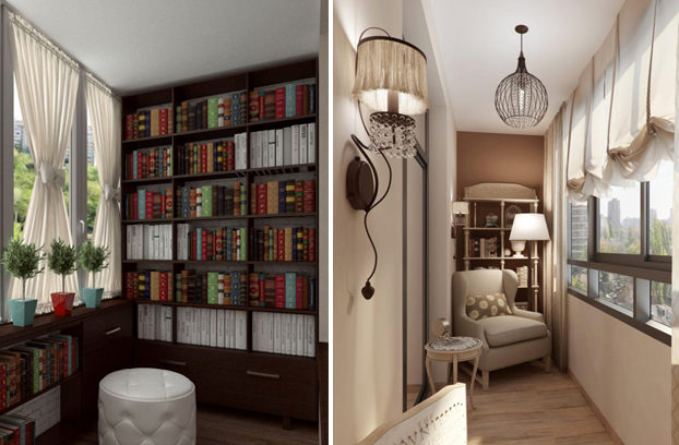 Якщо в маленькій квартирі високі стелі, то відмінним варіантом для компактного зберігання книг стануть полиці, розташовані в затишних куточках квартири. При можливості можна зробити кілька книжкових рядів, проте варто заздалегідь подумати про те, як ви будете їх діставати.
