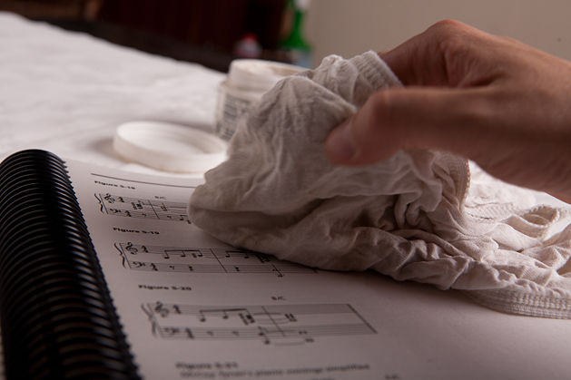 Обкладинку книг можна промити водою або мильним розчином (обережно, це може зіпсувати книгу остаточно). Для очищення від цвілі професіонали використовують формалін.
