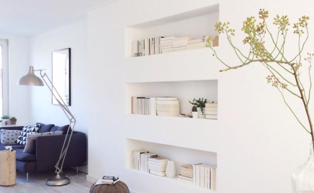 Поглиблення в стіні стане одним з незвичайних способів зберігання книжкових видань, проте не у всіх квартирах вони присутні. При бажанні ви можете зробити нішу самостійно з гіпсокартону, але враховуйте, що в цьому випадку вона займе певне місце в квартирі.