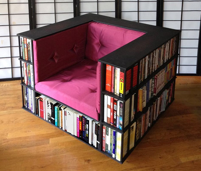 Ні, не варто складати свої книги на крісло, як ви робите це з одягом. У меблевих магазинах можна купити крісло-бібліотеку, в яку поміститься достатню кількість книжкових видань. При можливості його можна зробити самостійно.
