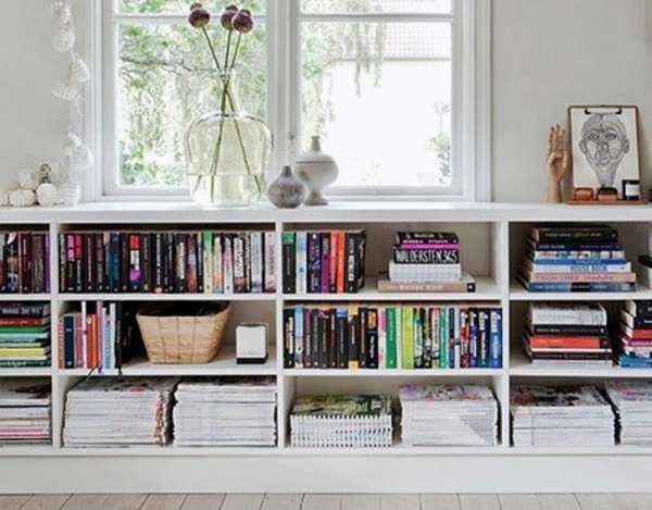 Підвіконня може запросто замінити книжкову полицю. Пам’ятайте, що даний спосіб може нашкодити книг, тому перш ніж ви їх помістіть туди, затемніть чим-небудь ту ділянку, де будуть розташовуватися видання.