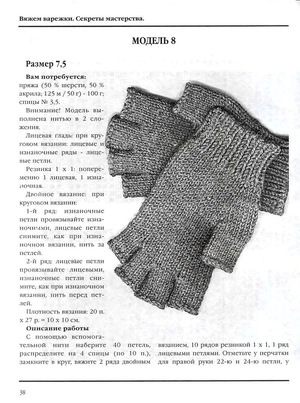 Цей виріб може бути як однотонним, так і з додаванням ниток будь-якого кольору в лицьову гладь чи гумку. План в’язання таких рукавиць дуже простий: гумка 2 на 2 для зап’ястя, а все інше — це лицьова виправляй.