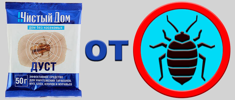 Виробники дусту вказують, що препарат здатний винищити не тільки тарганів, але і клопів. Безсумнівно, інсектициди, що входять до складу коштів, нададуть згубний вплив на постільних шкідників. Однак необхідно, щоб порошок потрапив на тілі або в порожнину комахи. Насправді досягти цього складно, так як доведеться обробляти стіни і інші вертикальні поверхні, на яких дуст не буде триматися. Якщо вибираєте засіб від клопів, краще віддайте перевагу рідким речовин або спреям.