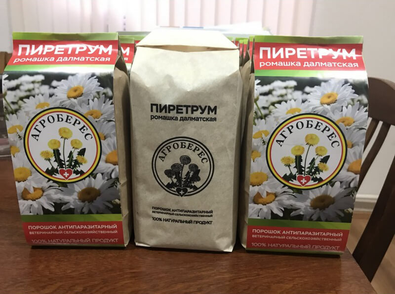Основний діючий компонент речовини – висушені квіти ромашки долматской. Унікальність препарату – повна відсутність токсичності для людини. При попаданні на покрову і в порожнину, діючий компонент викликає порушення роботи внутрішніх органів і знерухомлює тіло комахи, внаслідок чого тарган гине.