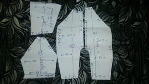 Перенесемо викрійки комбінезона на матеріал, залишимо припуски один див. у кожного срезика всіх деталей.