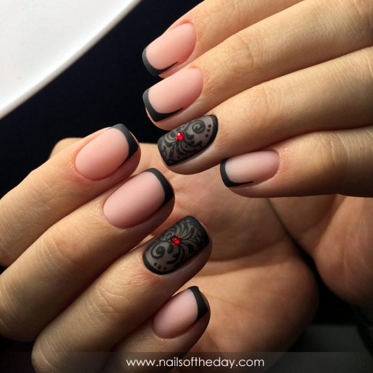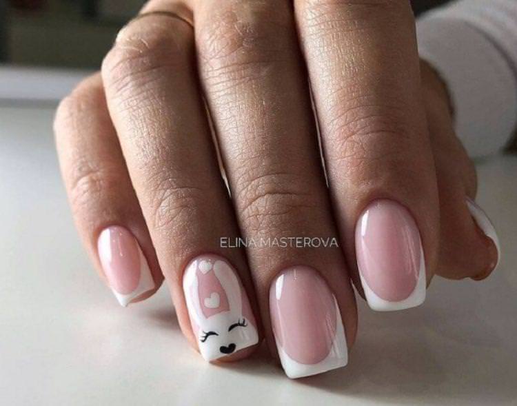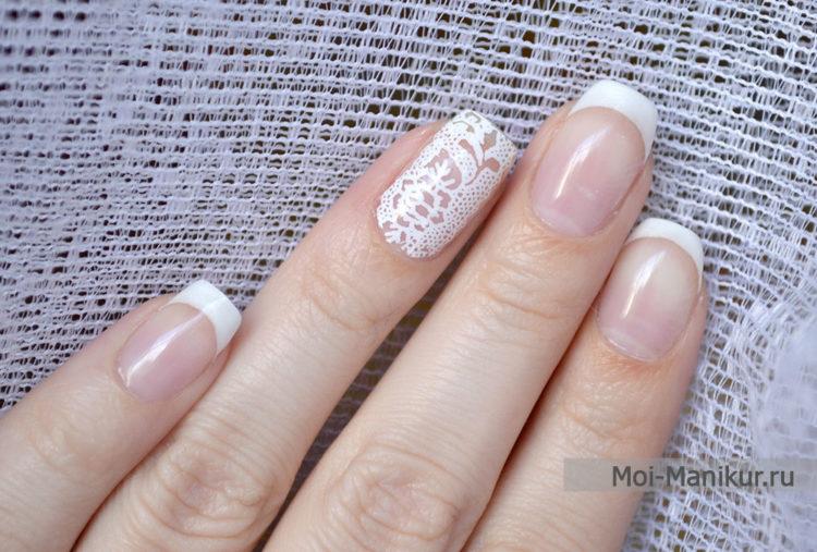Незвичайний френч – це, звичайно, французький манікюр з малюнком, адже малювати можна все, що завгодно. Найчастіше малюнок роблять на одному-двох нігтях. Дизайнерський манікюр може бути дуже помпезним – з пір’ям, стразами, мереживом.