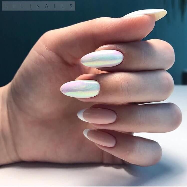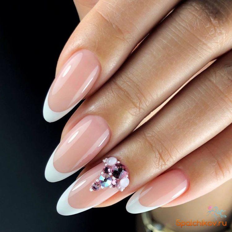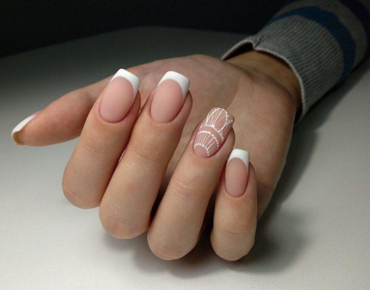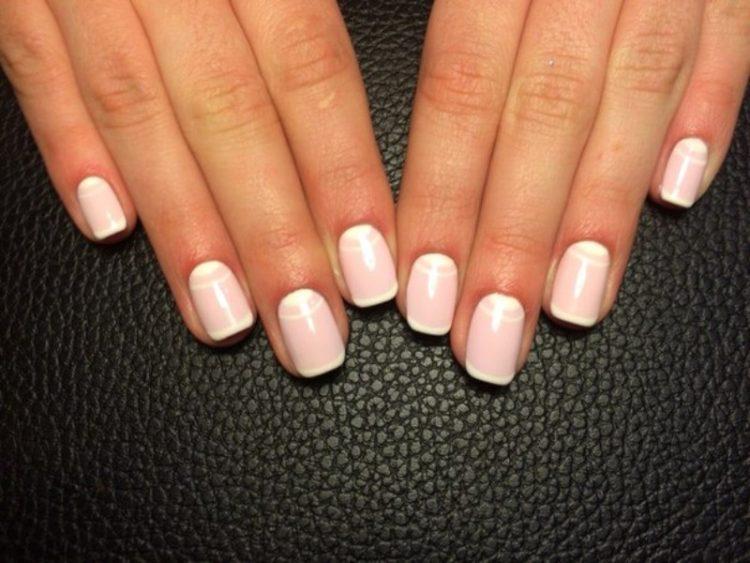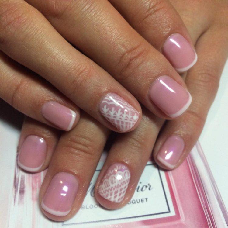 Підкреслити красу класичної «усмішки френча» (в класичному манікюрі місце стикування білого і рожевого) допоможе френч на овальних нігтях. Короткі нігті дизайн френч візуально подовжить і зробить охайними.