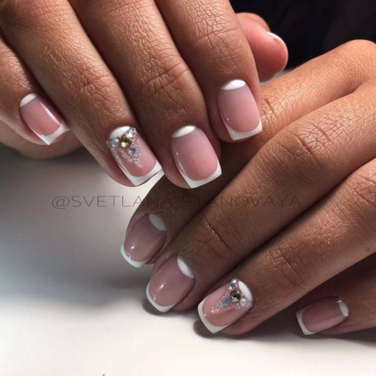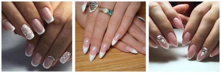Класичний френч манікюр дуже ніжний, передбачає не дуже довгий вільний край. При цьому край може бути овальний або гострий. Якщо довжина нігтя не достатня, то застосовують гель. Для повсякденності свята (весілля) багато вибирають французький манікюр, фото якого ви можете розглянути нижче.