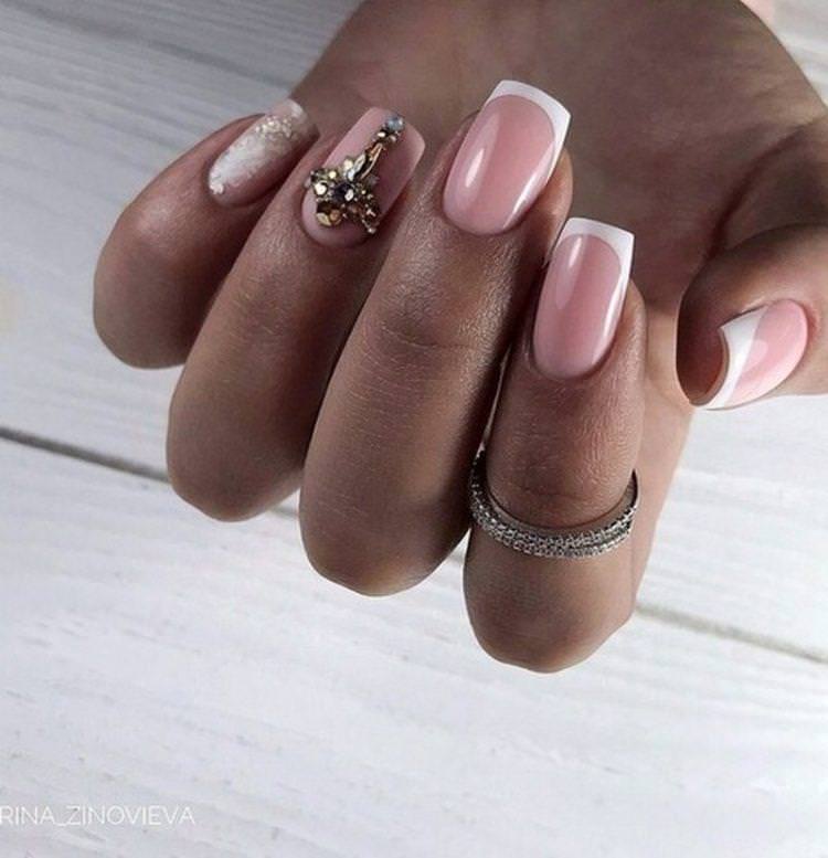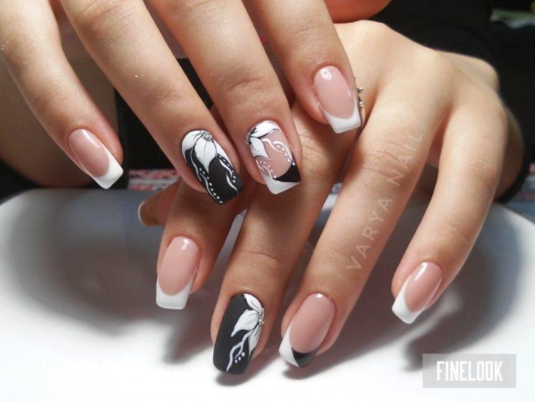Іноді роблять яскравими лише кілька нагідок, а решта – класичними. Шикарно виглядає французький манікюр з дизайном: коли використовуються малюнки, картинки, стрази, блискітки і т. д. Вибираючи френч манікюр, фото якого більше всього сподобалося, ви можете бути впевнені, що він буде доречний в будь-якому випадку.