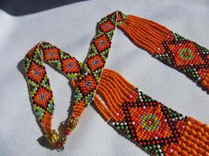 Ґердани з бісеру зі схемами виготовляються в техніці ткацтва. Бісерне ткання – відносно новий напрямок, тому аксесуари в такій техніці не зустрінеш у народному костюмі. Бісерне ткання буває: