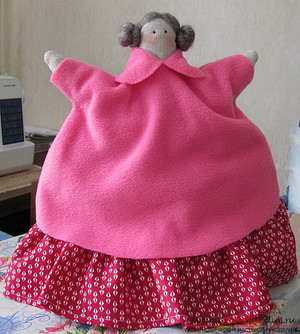 Крім того, чохли для чайника можна зшити вручну або на швейній машинці. Такі викрійки не відрізняються складністю – у всякому разі, їх нижні частини. Широкі спідниці шиються по колу, а от верх, сама баба або лялька, шиється по-різному. Це може бути лялька тільда, або лялька з капрону. Хтось віддає перевагу св оими руками шити казкових принцес, а кому-то сподобається лялька баба-яга — справа смаку. Варто лише зазначити, що без вправності і практики зшити бабу-ягу з будь-якого матеріалу буде складно — надто характерний вона персонаж.