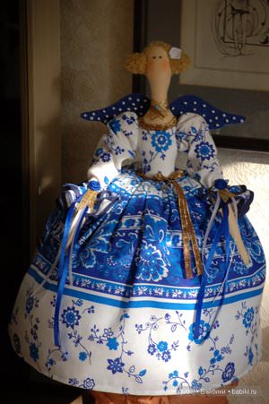 Тканина для тельця і для наряду. Для тельця підійде однотонна біла або бежева бязь або бавовна, а для сукні той же матеріал, але в кольоровому виконанні.- Оздоблювальні матеріали – тасьма, мереживо, гудзики, і т. д.