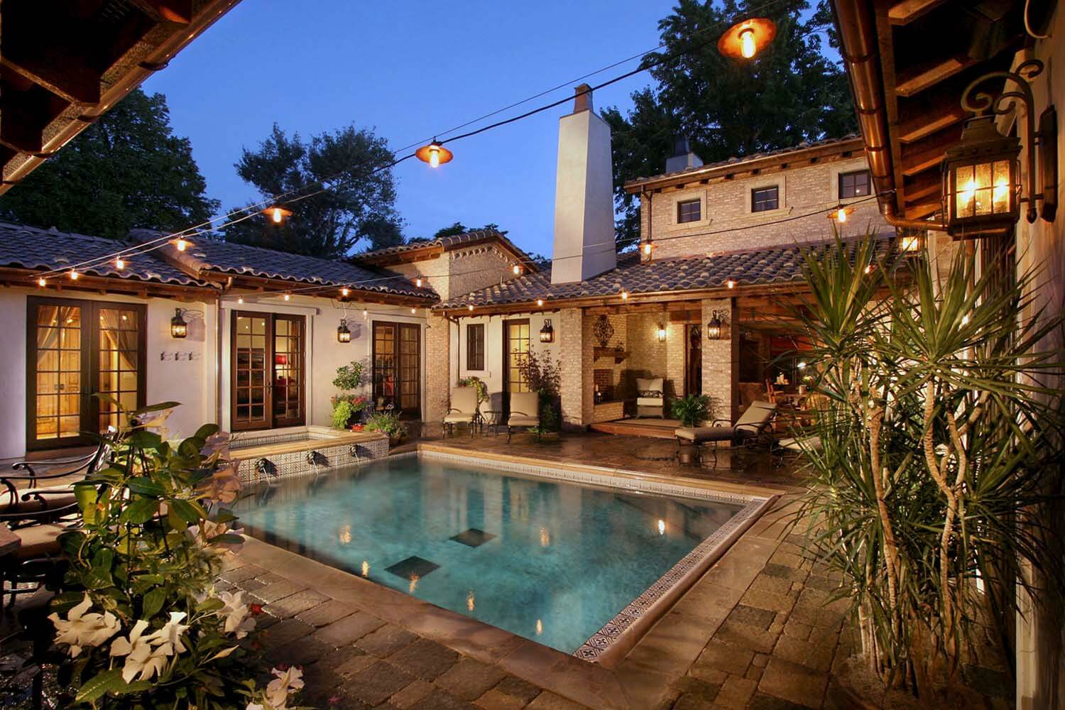 Місця, виділені сфокусованої підсвічуванням, відразу кидаються в очі, що дозволяє експериментувати зі світловими підходами. В якості креативної ідеї можна використовувати світильники навколо густих дерев, що створюють химерні тіні грою світла.