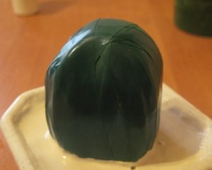 Після того, як пінопласт застиг в гіпсі, його фарбують у зелений колір. Фарбу можна взяти звичайну акварельну, але краще підійде гуаш. Деякі використовують замість фарби ізоляційну стрічку зеленого кольору.