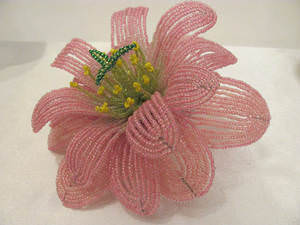 При плетінні маточок у квітках користуються методом паралельного плетіння. Кожна маточка повинен складатися з 7 рядів, а всього маточок буде 3 штуки. На дріт нанизують світлі зелені бісеринки і скручують між собою. Так вийшов маточка.