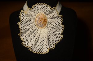 Жабо! Воістину аристократичний аксесуар. Можна сплести його в одну-дві хвилі, а можливо створити пишне хмара з переплетення намистин. Суворе, елегантне жабо, запорука впевненості в собі і своїй привабливості.