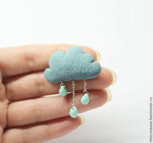 - З блакитного пластику сформувати хмаринку. Хмаринка повинна виглядати як невелика хмарина. Розмір – 5 на 2 див. Щоб брошка була об’ємною, хмарину не потрібно притискати.