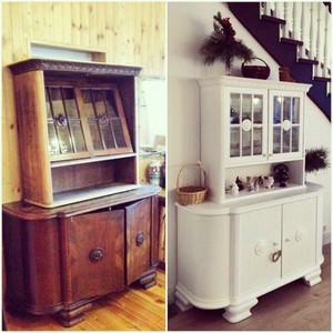 Велику меблі декупажируют за тим же принципом. Але варто пам’ятати, що для цього доведеться використовувати не цілком серветку, а тільки деякі мотиви з неї. Для цього варто вирізати елементи і наклеїти їх на поверхню, ретельно зашкурити і покрити лаком.
