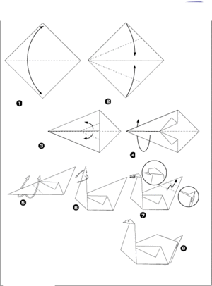 Скористайтеся покроковими фотографіями процесу роботи по створенню лебедя. Орігамі вимагає, щоб смуги згину були чітко позначені, для цього по згину рекомендується проводити рукою або лінійкою. Отже: