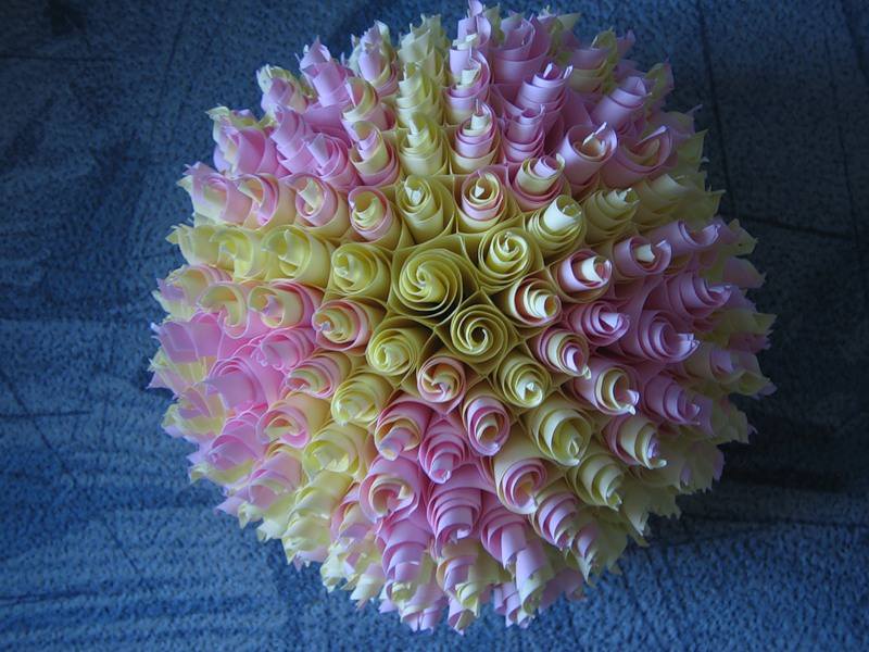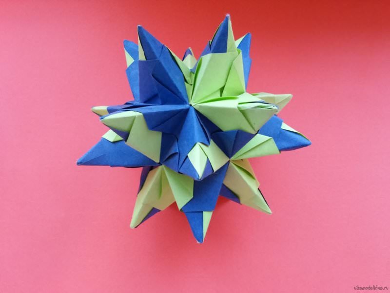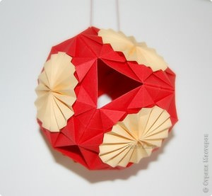 Досить складно виглядає куля-сакура, але вона проста у виготовленні. Така кусудама досить об’ємна і виглядає дуже ефектно.