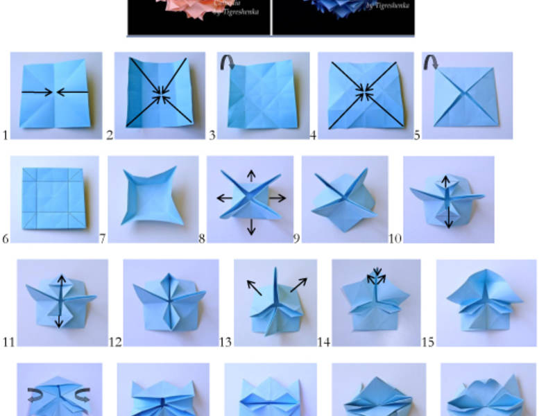 Зробити модуль для класичної кусудама не складе складності. Достатньо взяти аркуш паперу і ножиці, а потім приступити до згинання квадратів.