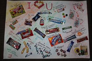 Тематичний плакат, в якості теми можна взяти улюблену книгу іменинника, фільм, подорож мрії.- Плакат з улюбленими солодощами вашого улюбленого людини.