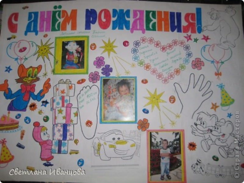 - Стінгазета з фотографіями і перерахуванням достоїнств іменинника.