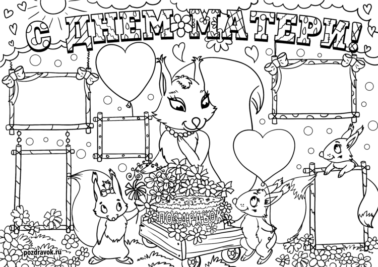 Але якщо дитина не вміє малювати, він може знайти розмальовки до Дня матері для дітей, роздрукувати їх, розфарбувати і подарувати мамі. Нижче є багато прикладів таких розмальовок.