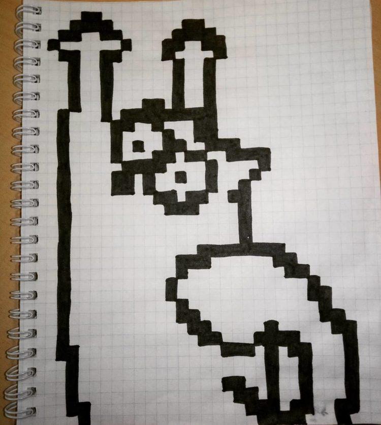 Якщо вам подобаються малюнки по клітинках, пикселька (так називається цей прийом малювання) вас точно порадує. Щось так можна намалювати в зошиті або кишеньковому блокноті. Одна клітина – це один комп’ютерний піксель. Якщо постаратися, то по клітинам можна намалювати арт будь-якої складності.