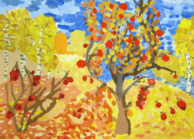Ви намалювали осінь, малюнок вийшов яскравим і барвистим. Картинка ніби ожила. Подивіться уважно на деталі, може, малюнок «осінь» ви щось забули додати. Коли будете малювати, обов’язково пофантазуйте з дитиною, що можна додати малюнок осені. Ви здивуєтеся, наскільки дитячі фантазії можуть далеко відлетіти.