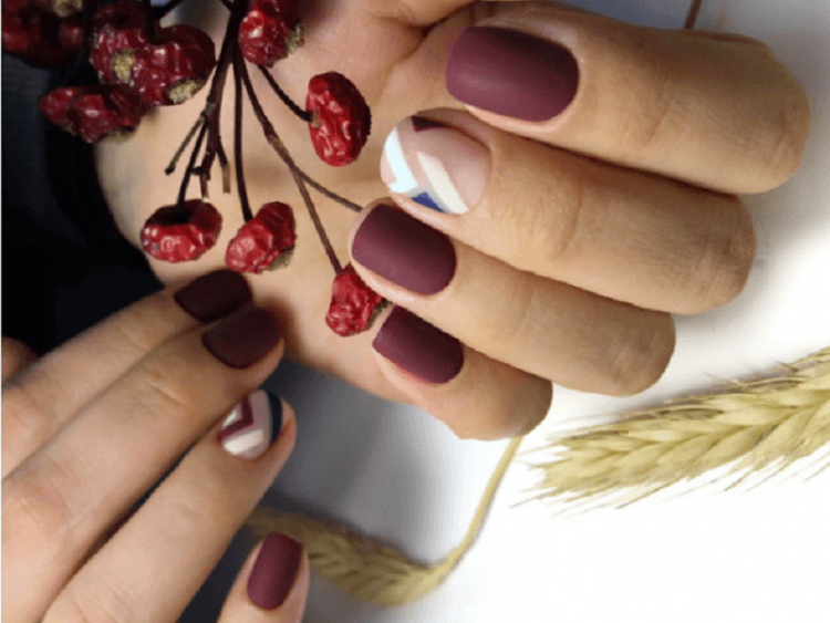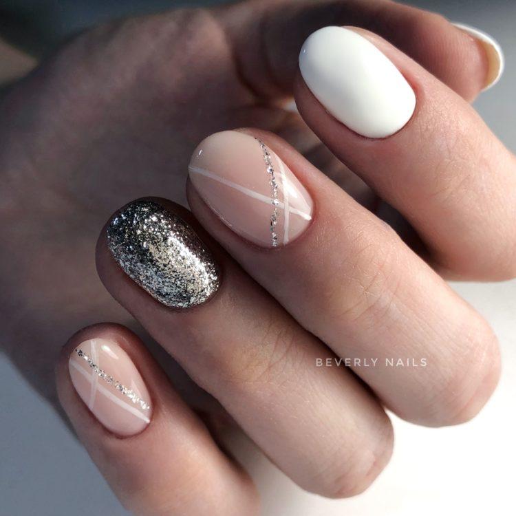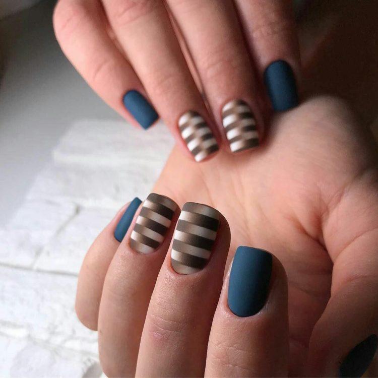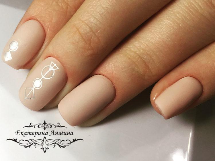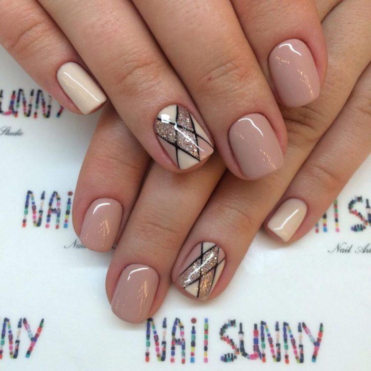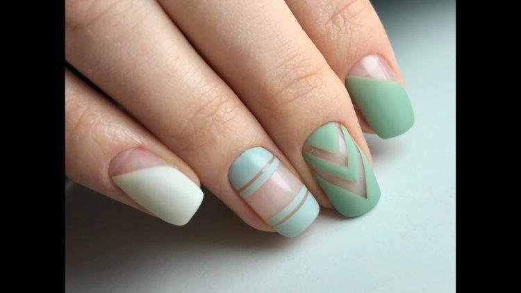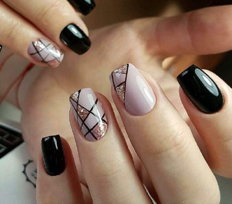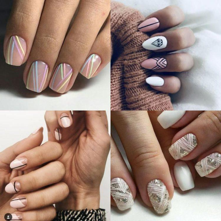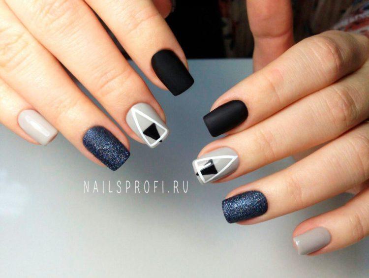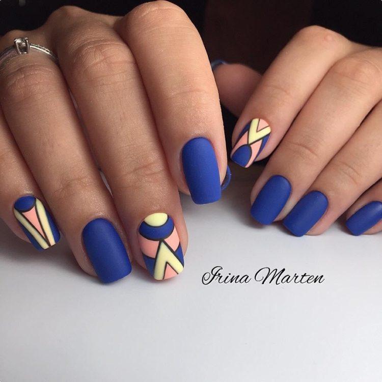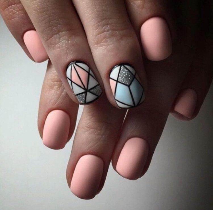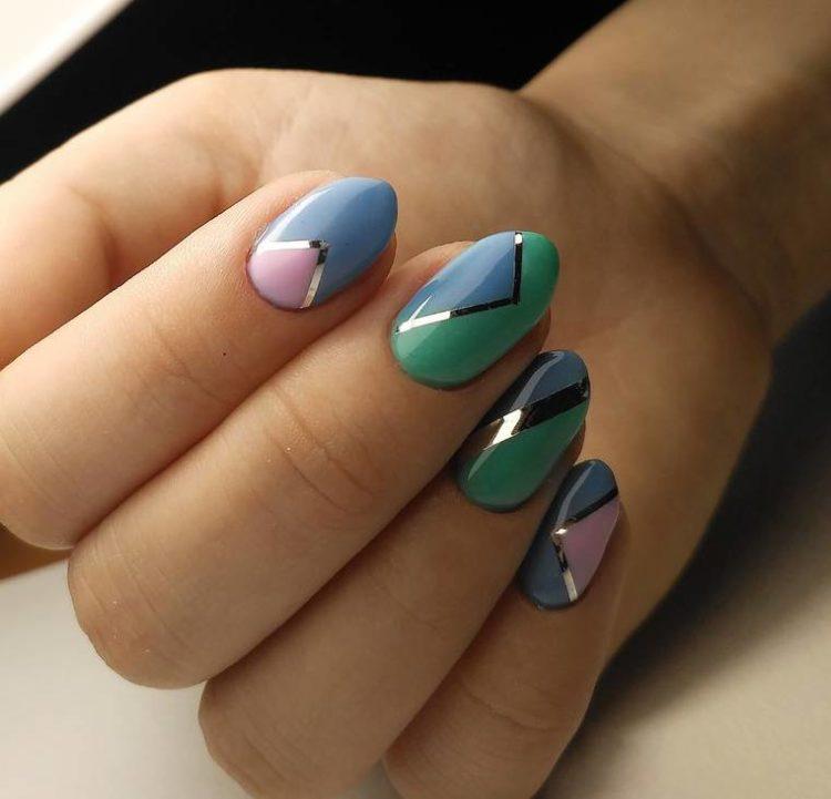 Геометричні малюнки на нігтях шикарно виглядають з плавно перетинаються або паралельними лініями, об’ємними фігурами, геометричними трикутниками. Щоб зробити манікюр з геометрією більш вишуканим, майстри поєднують кілька відтінків в одному варіанті.