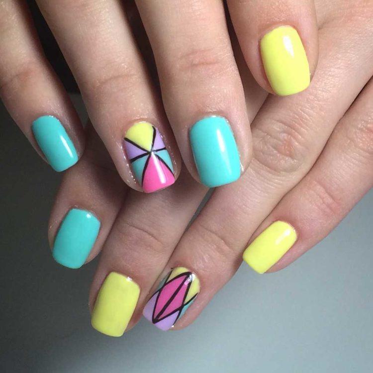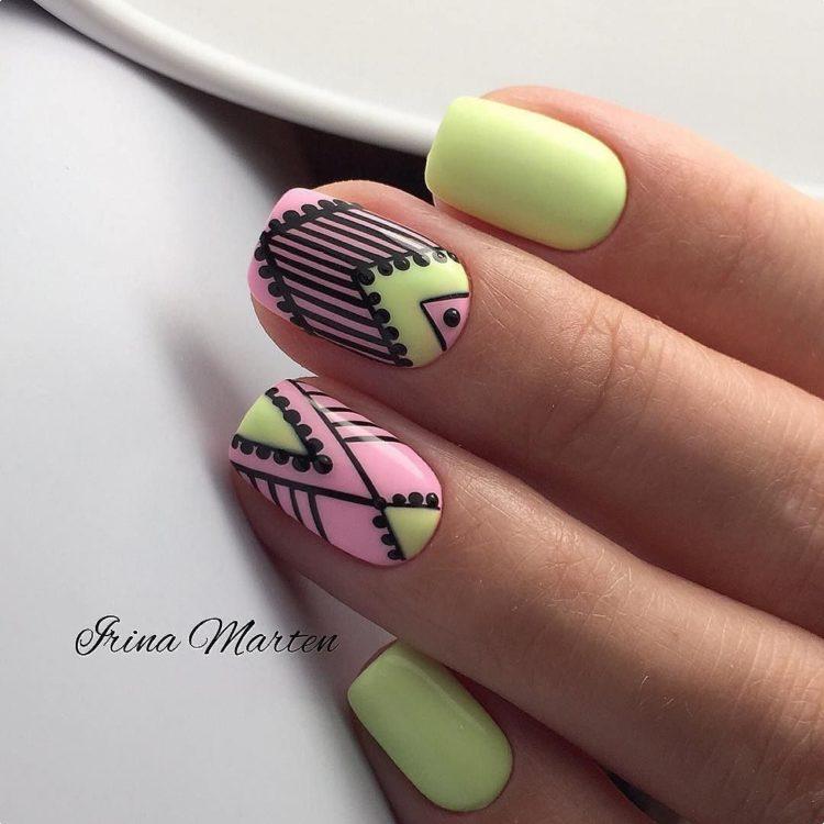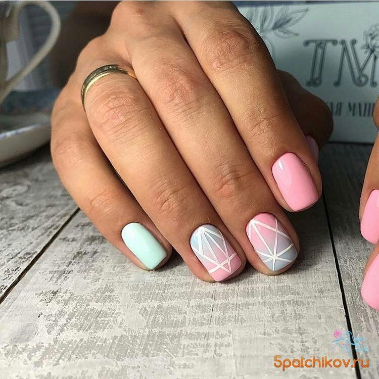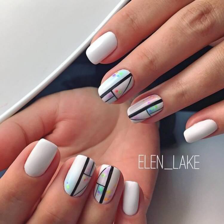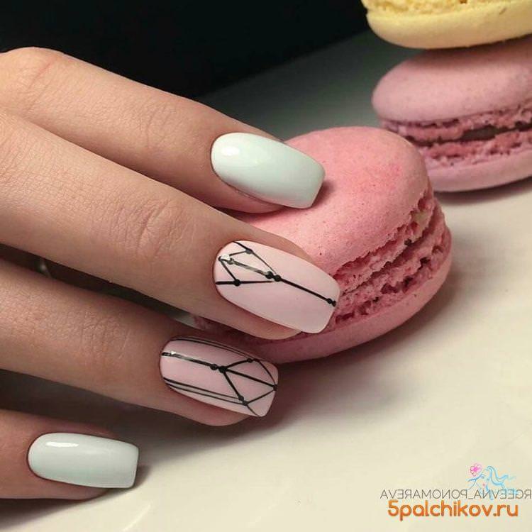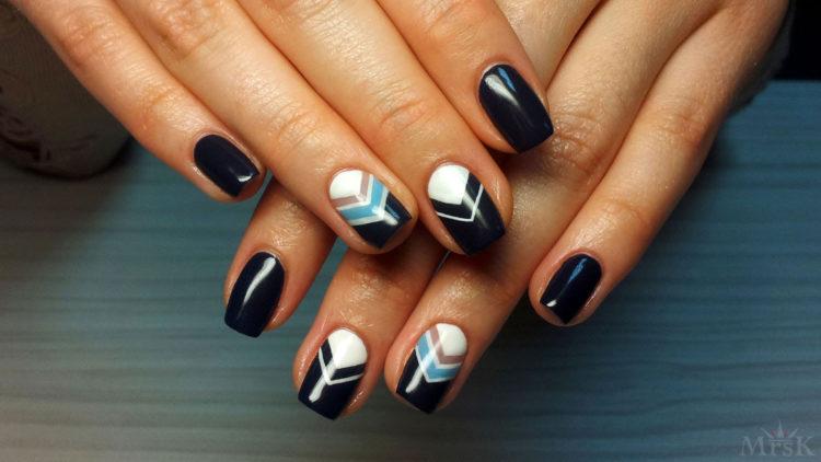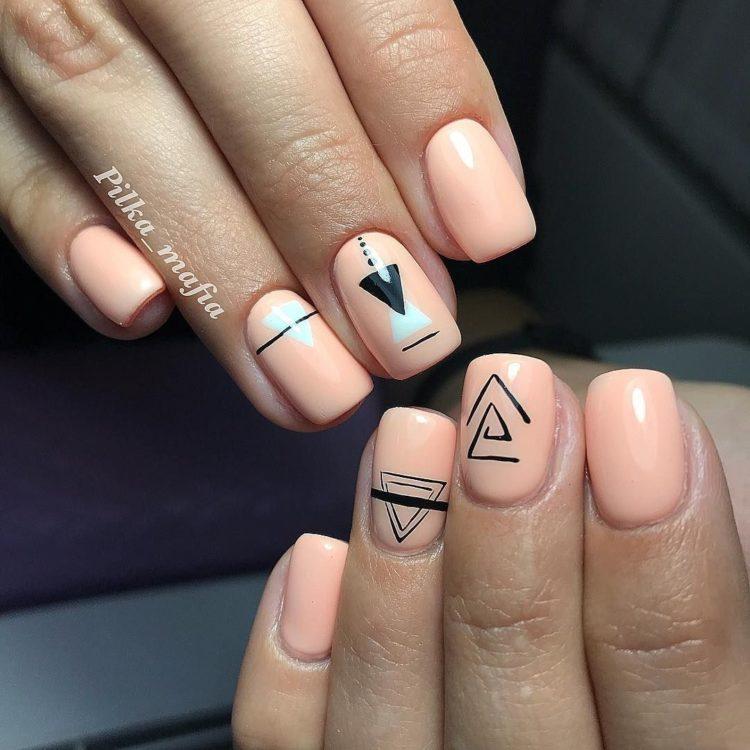 Манікюр геометрія (фото для прикладу нижче) актуальний в кожному сезоні, однак краще підбирати колір в залежності від пори року. Геометрія – графіка, яка чудово виглядає навіть якщо ваші нігті короткі. Просто визначитеся з малюнком.