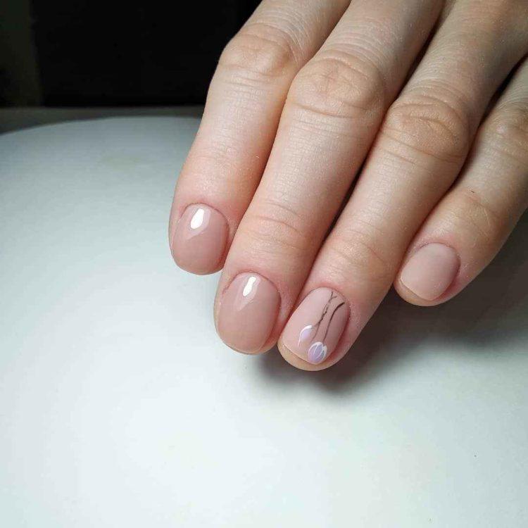 Дизайн нігтів на короткі нігті буде шикарно виглядати навіть без малюнка. Світлі відтінки, особливо в пастельних тонах, дуже вигідно виглядають на будь-яких нігтях. Можна виділити один пальчик, найчастіше безіменний, іншим кольором або прикрасити непомітним малюнком. Манікюр на дуже короткі нігті краще всього виконувати гель лаком саме в світлих відтінках.