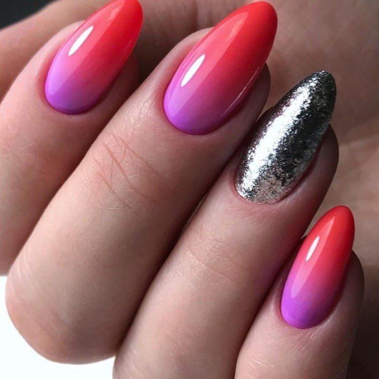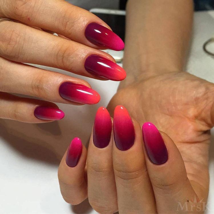 Якщо хочете зробити незвичайний дизайн нігтів омбре, фото з цієї рубрики спеціально для вас. Ви можете зробити багатоколірного і навіть райдужний градієнт. Цікаво виглядає розтяжка блискітками. Самий сміливий варіант – неоновий, ідеальний для дискотек. Манікюр з переходом кольору фото покажуть у всій красі.