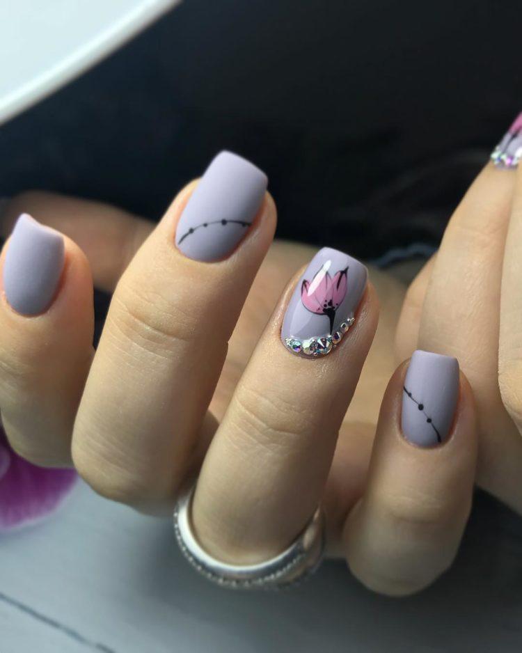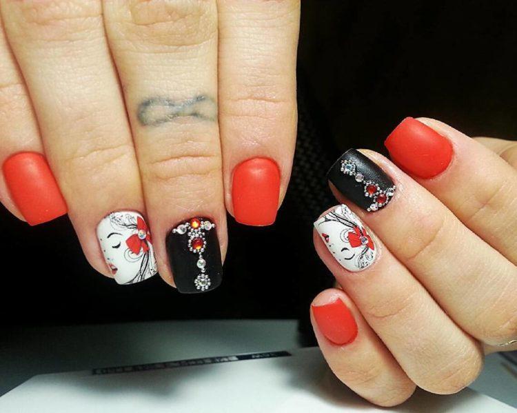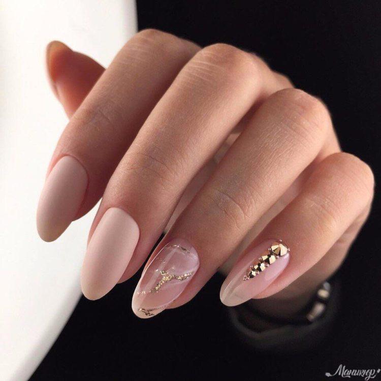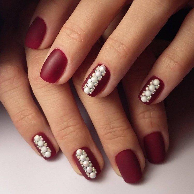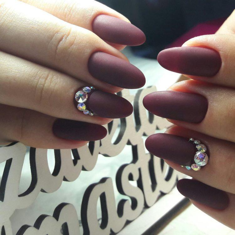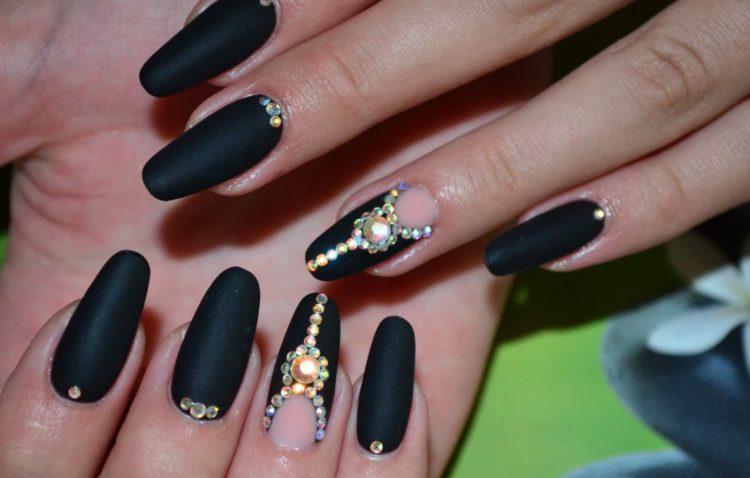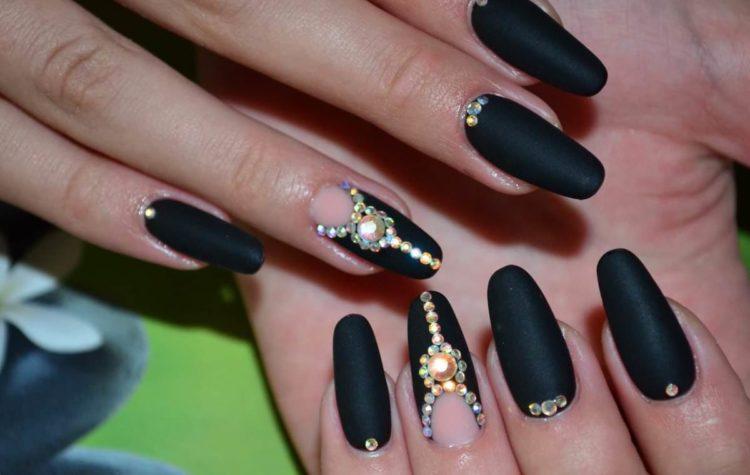 З появою гель-лаків з’явилася можливість робити матовий манікюр. Плюшева текстура прикрашає і короткі, і довгі нігті. Хочете простоти, лаконічності і водночас ефектності? Зверніть увагу на фото нігтів, де ніжні рожеві відтінки з матовим покриттям. Для більш рішучих леді підійде чорний манікюр зі стразами або бордовий манікюр зі стразами і матовим покриттям. Фото з такими комбінаціями – це новинки нігтьової індустрії.