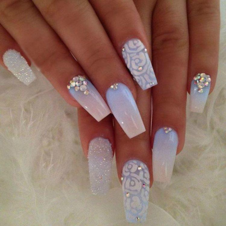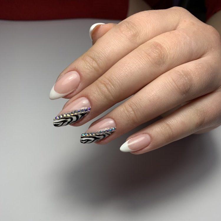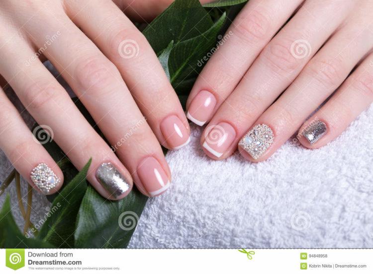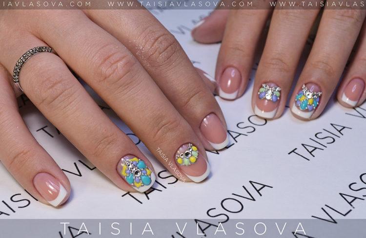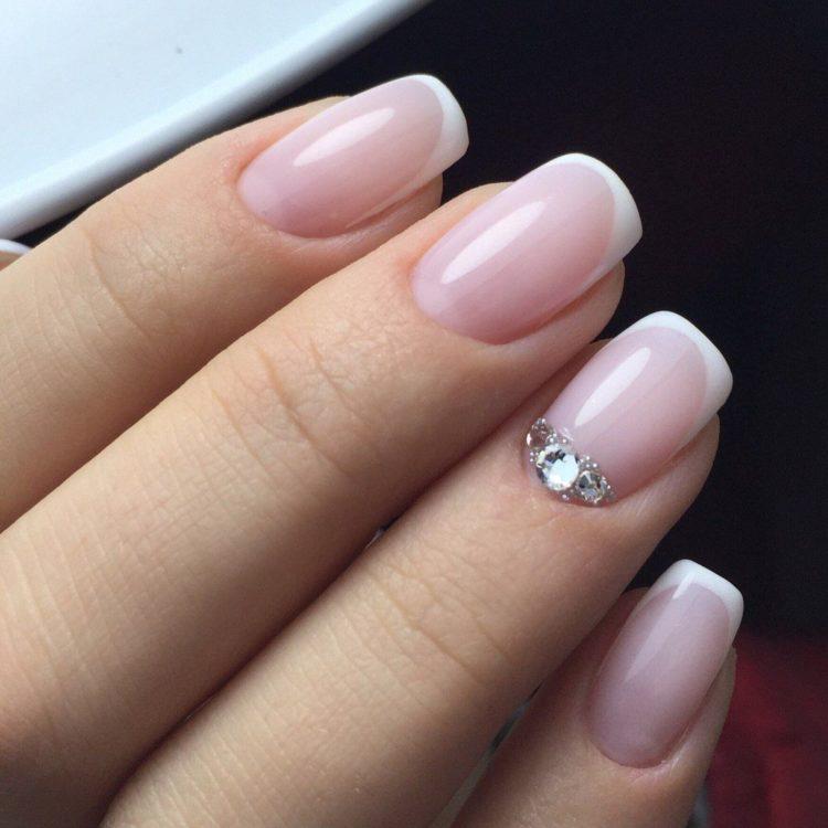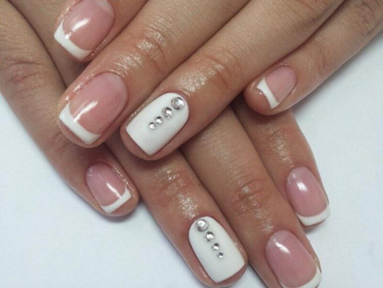 Французький манікюр зі стразами – це безпрограшний варіант для будь-якого заходу. Він доречний в будь-якому образі, а також немає більш відповідного варіанту для весільного торжества, ніж білий френч зі стразами. Він ніжний і делікатний, але в той же час розкішний і сексуальний. Френч буває не тільки білий, а й кольоровий, наприклад червоний або синій, доповнити його можуть ніжні малюнки і вензелі.