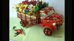 Якщо людина освоїла принцип виготовлення солодкого подарунка з цукерок, то йому не складе труднощів зробити солодкий подарунок у вигляді пожежної машини, джипи, мотоцикли, танки, поїзда, корабля, швейної машинки або у вигляді музичного інструменту.