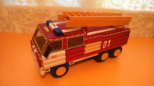 Пожежну машину можна зробити за описом солодкого вантажівки і доповнити пожежної атрибутикою. Пожежників можна зробити з пластиліну або маленьких іграшок.